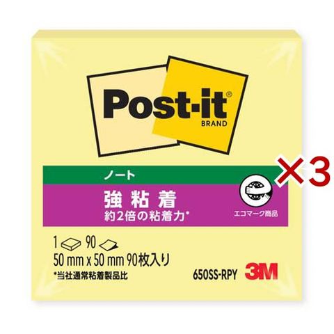 ポスト・イット 強粘着ノート パステルイエロー 650SS-RPY (90枚入*3コセット)