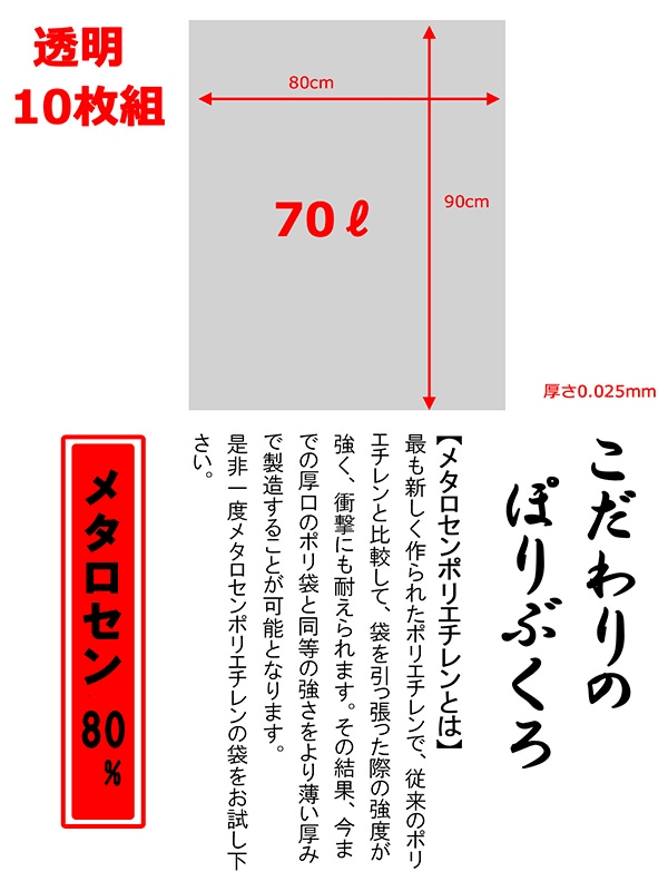 【ゴミ袋 0.025ミリ厚 70L 透明 10枚入り 薄くてもよく伸びるメタロセン高配合 MT73の商品詳細】
