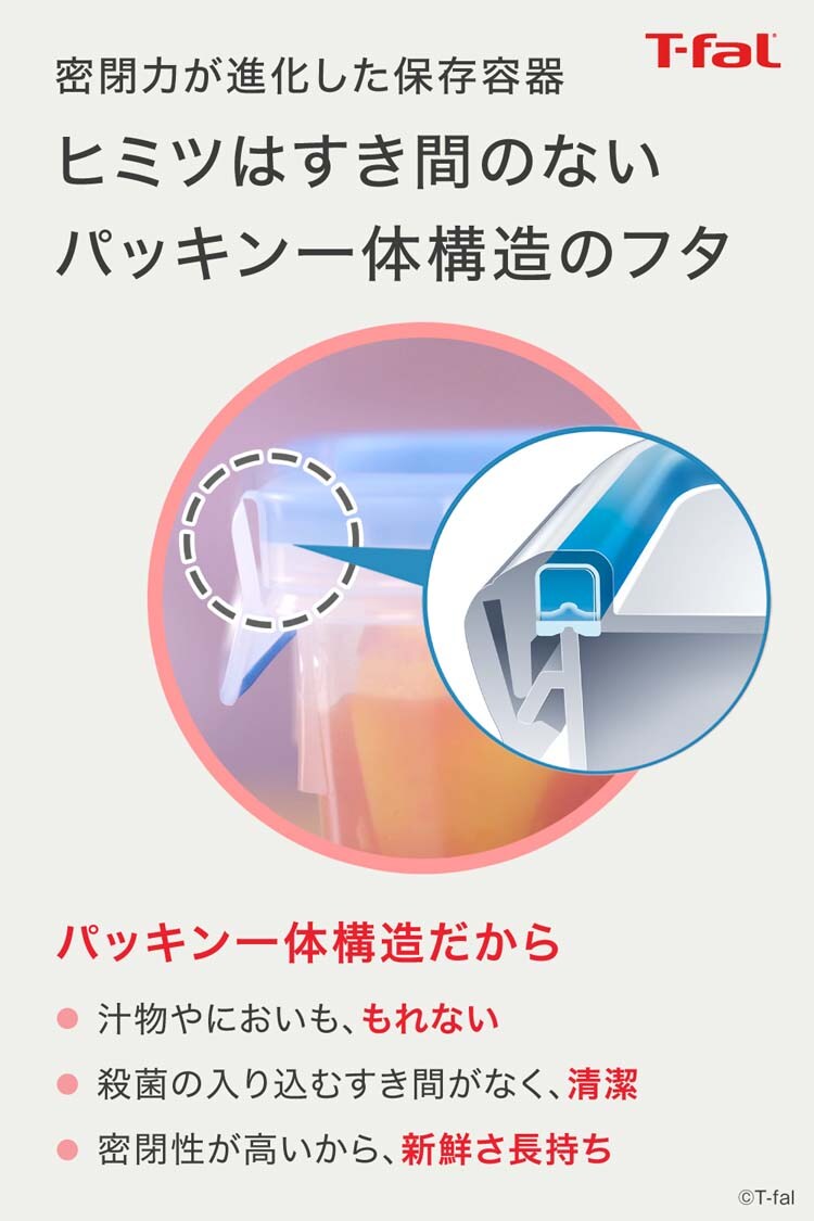●ふたの構造による高い密閉性もれない、新鮮さキープ、清潔!