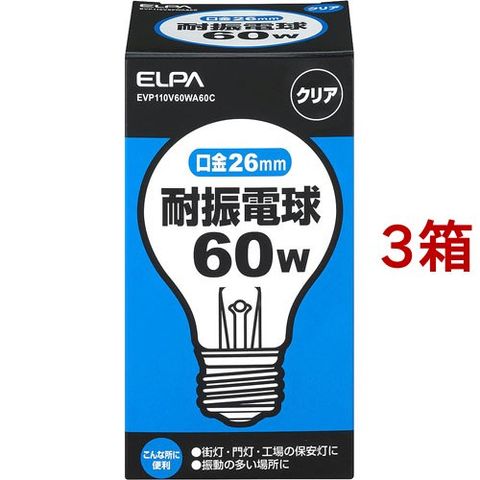 エルパ(ELPA) 耐震球60W E26 クリア EVP110V60WA60C (1コ入*3コセット)