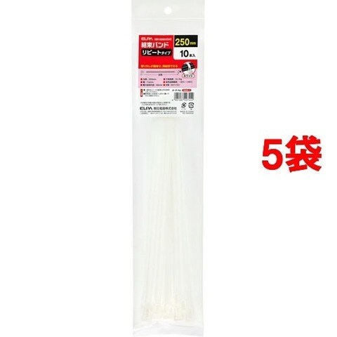 エルパ(ELPA) リピート結束バンド 250mm ホワイト KBR-N250010(WH) (10本*5コセット)