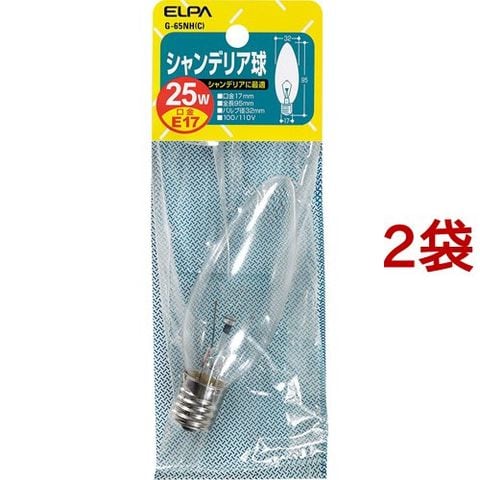 エルパ シャンデリア球 25W クリア G-65NH C (1コ入*2コセット)