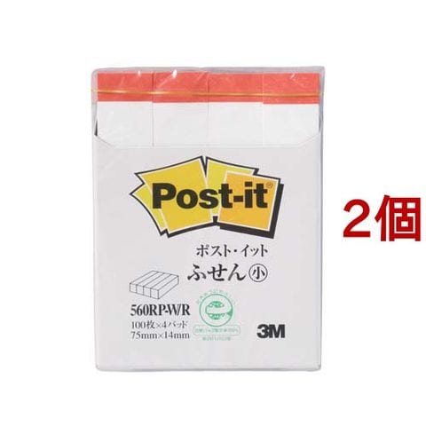 ポスト・イット 再生紙 スタンダード ふせん 小 ホワイト 赤線入り 560RP-W/R (100枚*4パッド*2コセット)