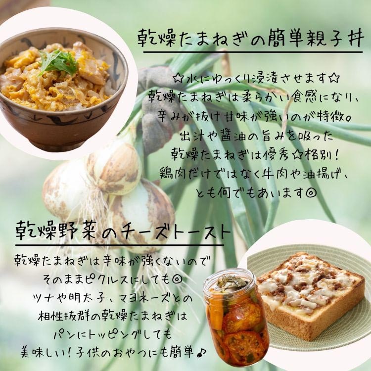 ●栽培から加工まで一貫しておこなった乾燥タマネギです。乾燥させることでより甘さが強まり、旨みが引きたちます。