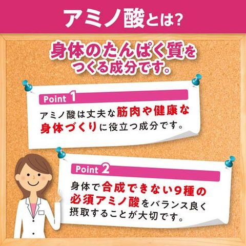 ●一日摂取目安量1本に、体内では合成できない9種の必須アミノ酸をバランス良く配合したパウダータイプのサプリメント。