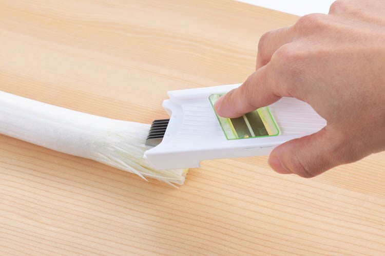 ●面倒な白髪ネギが引くだけで簡単に作れるスライサー。