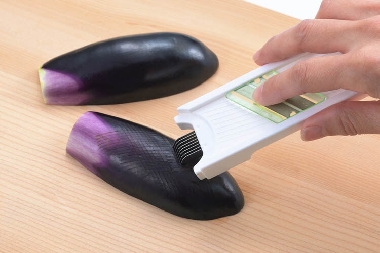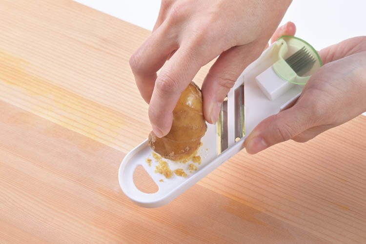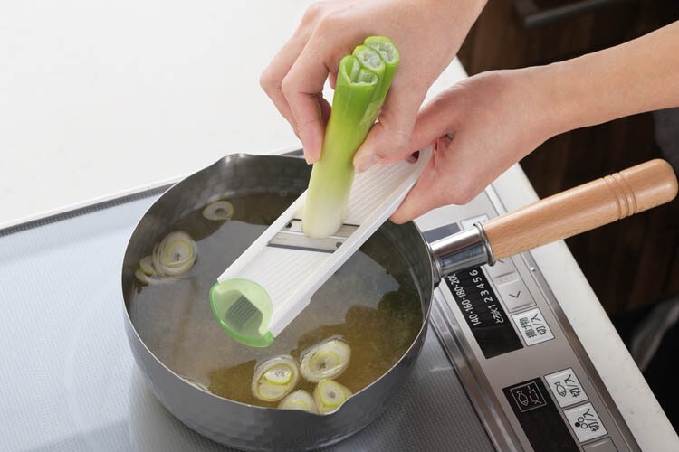 ●両刃のスライサーもついているので、ネギの小口切りやきゅうりのスライスもスピーディーにできる。