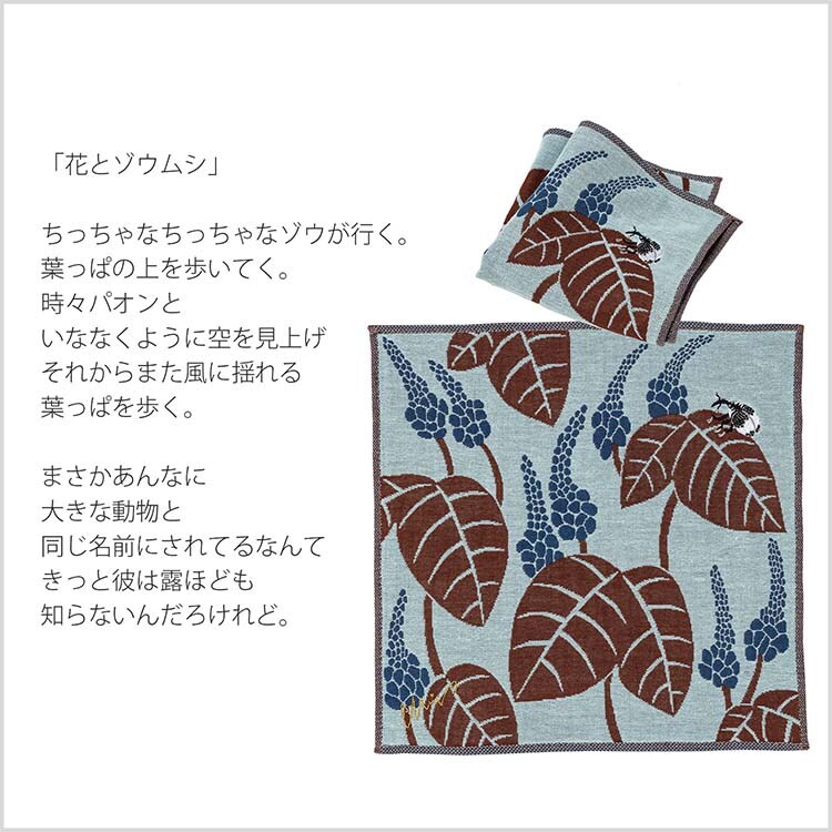 ●押絵画家森田MiWさんとタオルメーカー楠橋紋織のコラボブランド、morita MiWのガーゼハンカチです。