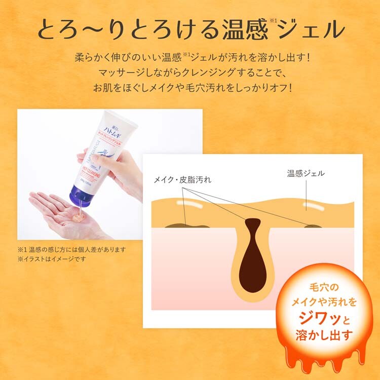 ●天然保湿成分ハトムギエキス配合のホットクレンジングジェルです。