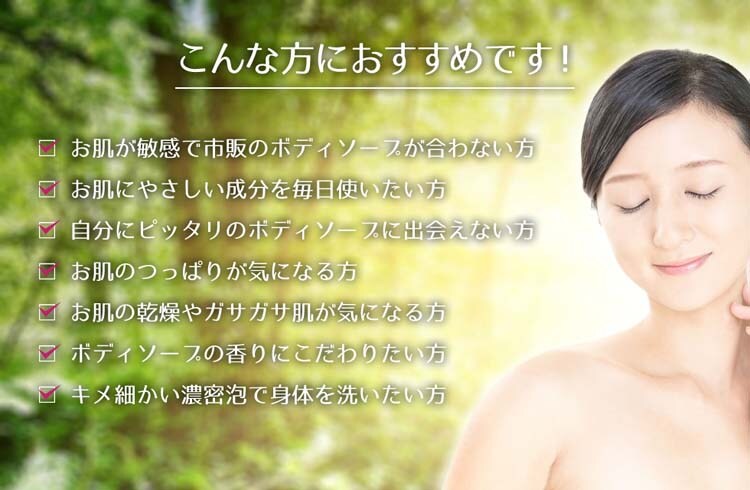 ●保湿成分 天然オリーブオイルとアルガンオイルを贅沢に配合した、お風呂上がりのお肌のうるおいをしっかり守るボディソープです。
