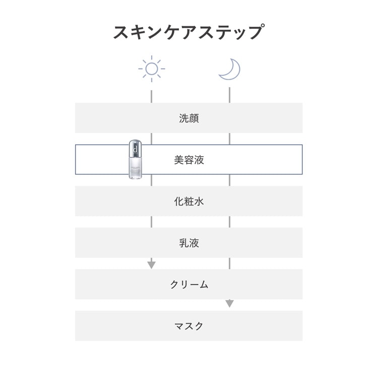 ●みずみずしい美容液が角層の深部まで浸透し、化粧水がより届く肌へ整えます。