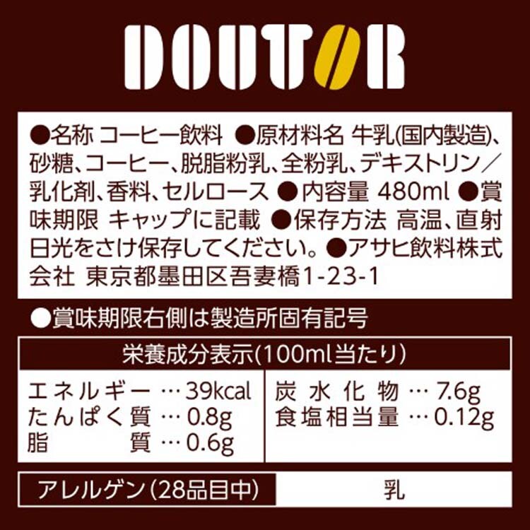 | 牛乳(国内製造)、砂糖、コーヒー、脱脂粉乳、全粉乳、デキストリン/乳化剤、香料、セルロース |