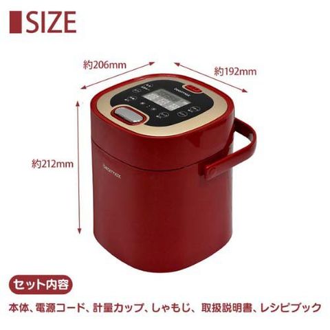 電源コード、計量カップ、しゃもじ、取扱説明書、レシピブック