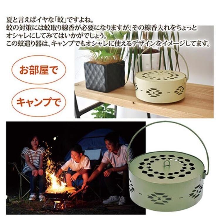 ●夏と言えばイヤな「蚊」ですよね。蚊の対策には蚊取り線香。その線香入れをちょっとオシャレにしてみてはいかがでしょう。この蚊遣り器は、キャンプでもオシャレに使えるデザインをイメージしてます。