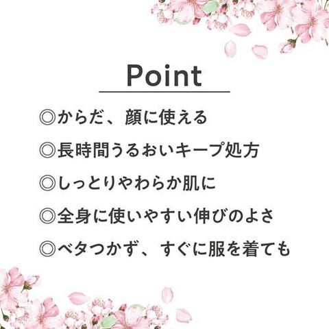 ●8種の国産植物オイル、シアバター、ソメイヨシノ葉エキスを配合。(保湿)