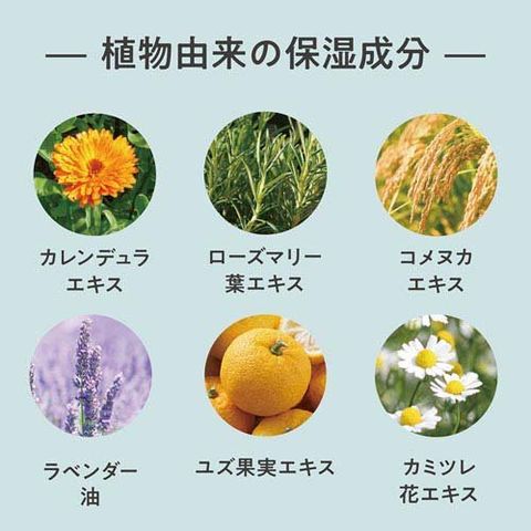 | 水、PEG-40水添ヒマシ油、ポリソルベート20、香料、BG、トウキンセンカ花エキス、ローズマリー葉エキス、コメヌカエキス、ユズ果実エキス、ラベンダー油、カミツレ花エキス、クエン酸Na、クエン酸、フェノキシエタノール、安息香酸Na |