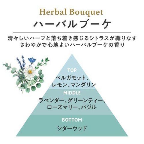 ●清々しいハーブと落ち着き感じるシトラスが織りなす、さわやかで心地よいハーバルブーケの香り。