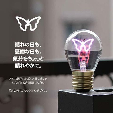 ●丸いガラス球の中にかわいいデザインのLEDネオンを封入。