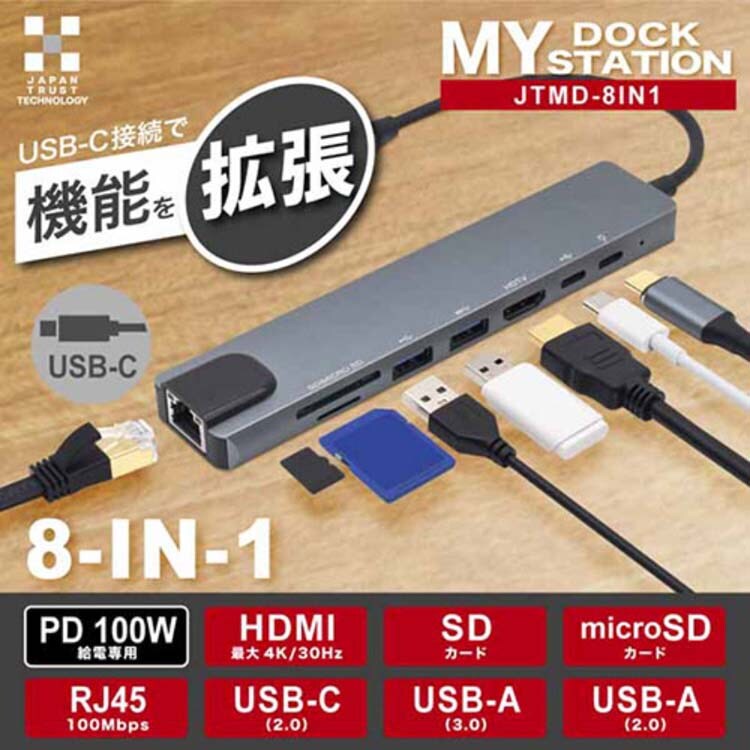 JTT MY DOCK STATION 8-IN-1(HDMI / RJ45 / microSD/ SD ほか) JTMD-8IN1 (1個)