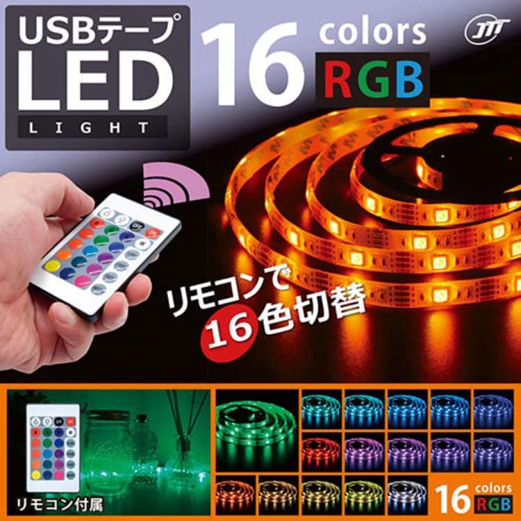 JTT USBテープLED 40cm RGB リモコン操作で16色 TPLED04M-RGBR (1個)