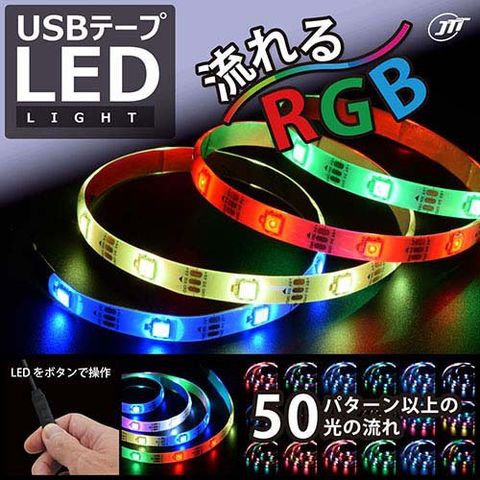JTT USBテープLED 40cm 流れるRGB 発光50パターン TPLED04M-RGBB (1個)