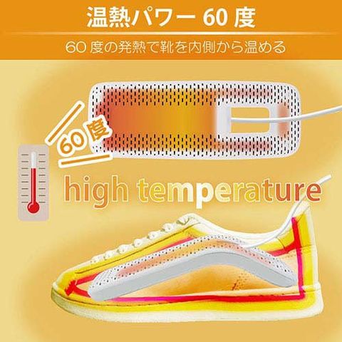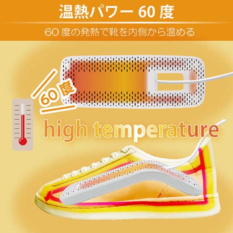 ●内部に搭載された高性能ヒーターが、靴の素材を傷めにくい約60度の安定した熱を発生させます。
