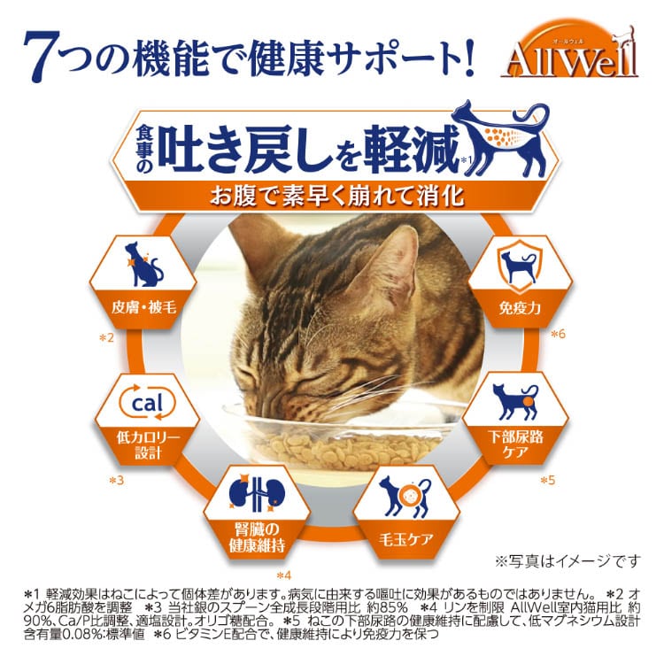(猫 ネコ ねこ キャットフード 猫 ドライフード 猫の餌 猫 餌 猫 えさ 猫 エサ 猫餌 ペットフード 猫 オールウェル オールウエル 吐き戻し軽減 吐き戻し 食事吐く 猫健康 All Well ユニチャーム 下部尿路)
