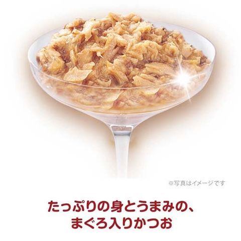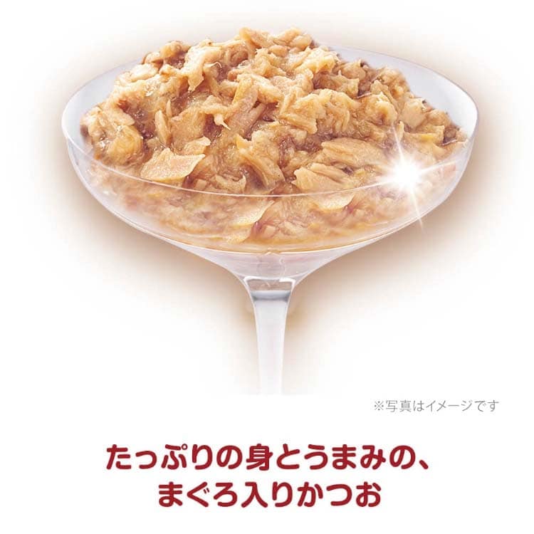 | 魚介類(かつお、まぐろ、フィッシュエキス)、チキンエキス、コーンスターチ、増粘多糖類、ミネラル類(Cl、K)、ビタミン類(B1、B2、B6、B12、E) |