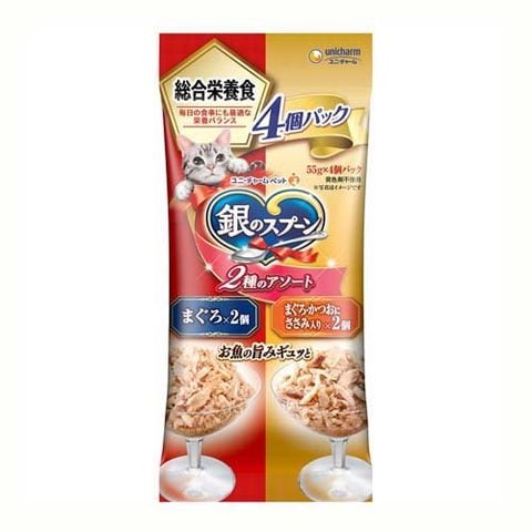 銀のスプーン パウチ 総合栄養食 2種アソート まぐろ/まぐろ・かつおにささみ (55g*4個入)