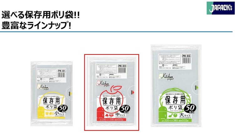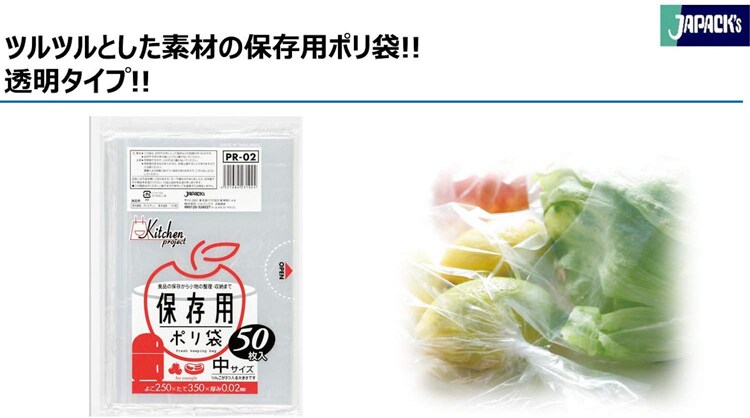 ジャパックス 保存用ポリ袋 中サイズ 25*35cm 厚み0.020mm 透明 PR02 厚み:0.020mm (50枚入)