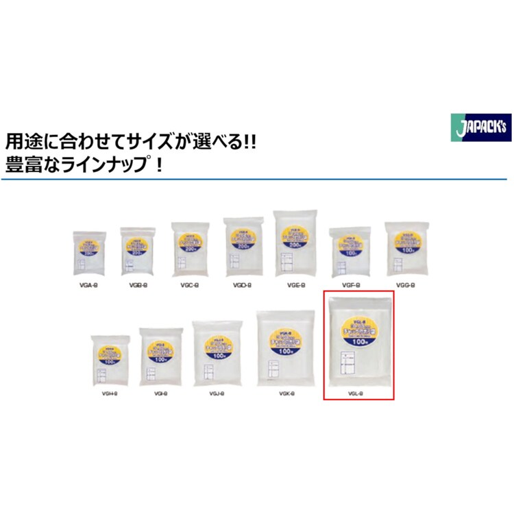 ジャパックス 厚み0.08mm チャック付ポリ袋 34*48cm VGL-8 厚み:0.08mm (100枚入)