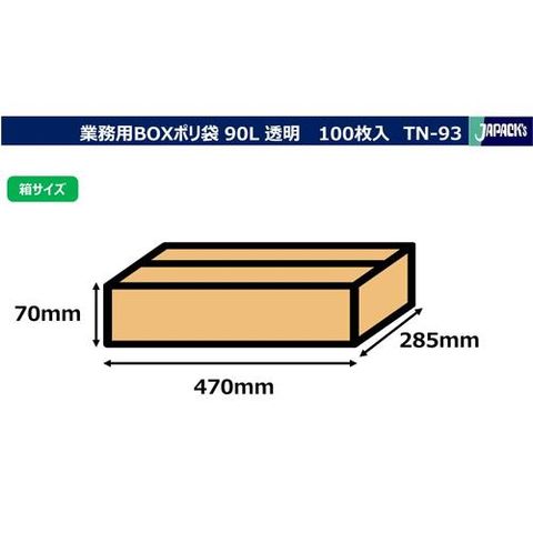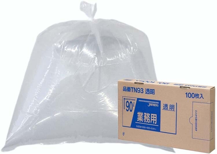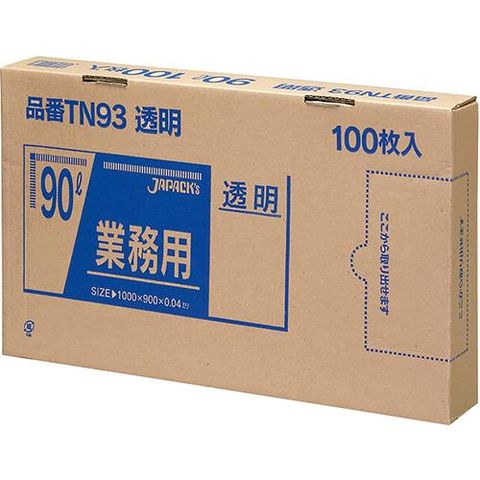 ジャパックス 業務用ゴミ袋 透明 90L BOXタイプ TN93 厚み:0.040mm (100枚入)
