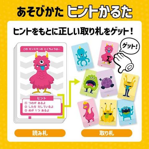 1.ヒントかるた(色や形などのヒントをもとにモンスターを探してゲットするゲーム)
