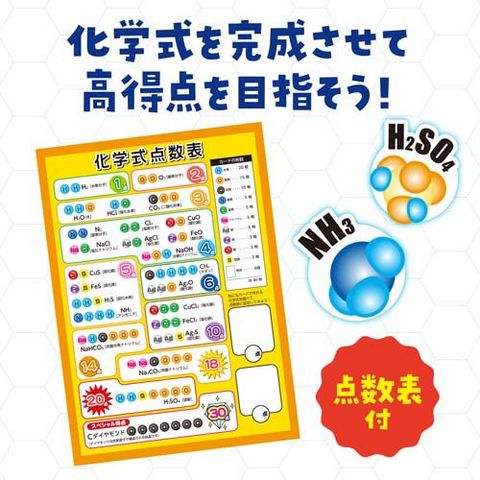 ●元素を集めて化学式をつくり、得点を競い合うカードゲームです。