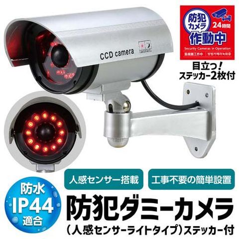 防犯ダミーカメラ 人感センサーライトタイプ ステッカー付 (1個)