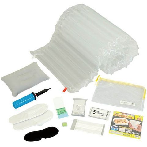 | ・連絡袋×1、ばんそうこう(2枚)×1、非常用食器折り紙×1、不織布マスク×1、持ち運び簡単エアー枕×1、立体スポンジアイマスク×1、耳栓×1組、非常用アルミ防寒寝袋×1、不織布スリッパ×1組、防災用ウェットティッシュ×1、災害時用エアーマット(200×60×6cm)×1、エアーポンプ(手動タイプ)×1 |