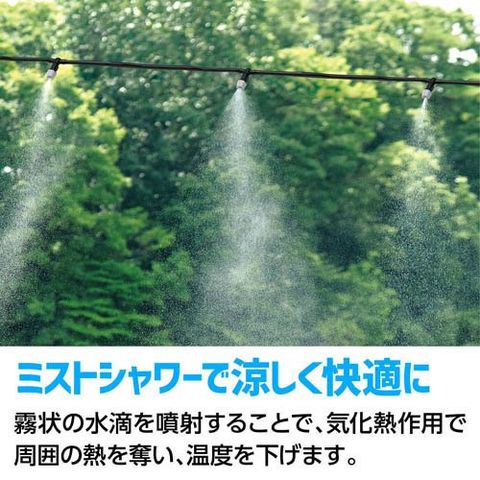 | ・パッケージサイズ:45×20×320mm ・重量:300g ・材質:PVC、ABS ・詳細サイズ:ホース:φ6mm×全長約10m、 ・蛇口にさすだけで10箇所のノズルから噴霧します ・地面から2~3mが設置に適した高さです ・一般的な丸型の蛇口にご使用ください |