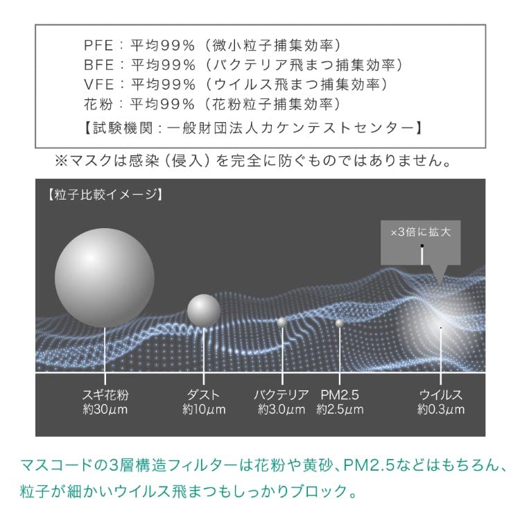 ●(内側カラー不織布)マスク内側をカラー不織布にすることでメイクや皮脂による汚れが目立ちにくい。