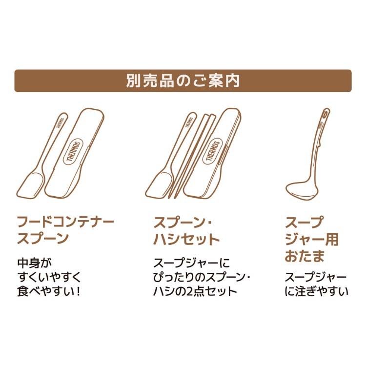 | ★真空断熱スープジャー 0.4L JBR-401 WHGY ホワイトグレー 本体寸法:約幅9.5*奥行9.5*高さ12.5cm 重量:約0.3kg 容量:0.4L 口径:約7cm 保温効力(6時間):60度以上 保冷効力(6時間):11度以下 材質:本体:ステンレス鋼(アクリル樹脂塗装)/外フタ:ポリプロピレン(発泡ポリプロピレン内蔵)/内フタ:ポリプロピレン/ベンパッキン:シリコーンゴム/シールパッキン:シリコーンゴム ★スープジャーポーチ RES-002 AMB アンバー 本体寸法:約幅10.5*奥行12*高さ14cm 重量:約0.1kg 適応スープジャー容量:0.25L以上~0.4L以下 材質:外生地:ポリエステル/内生地:ポリエステル/クッション(断熱材):ポリウレタン・発泡ポリエチレン・ポリプロピレン不織布 |
