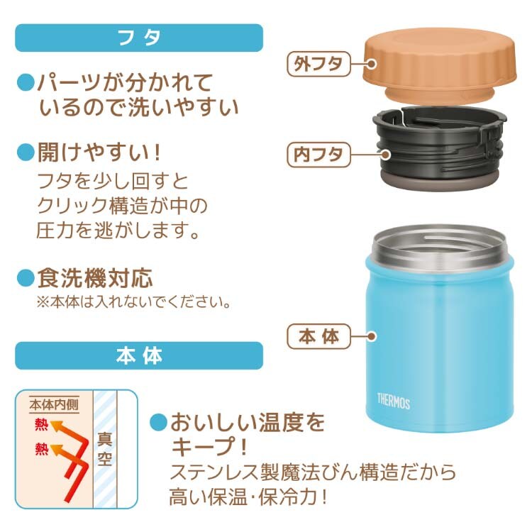 また、クリックオープン構造でさらにフタが開けやすくなりました!お手入れしやすいスープジャーです。