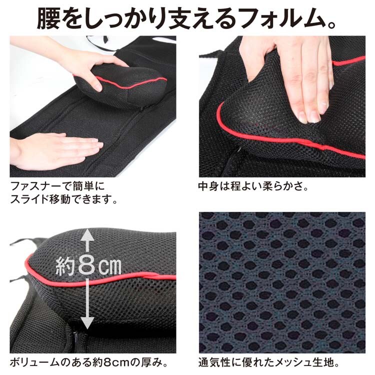 ●クッションをお好みの高さに移動・固定ができる!片手でスーッと移動させ、運転中の腰をグイっとサポート