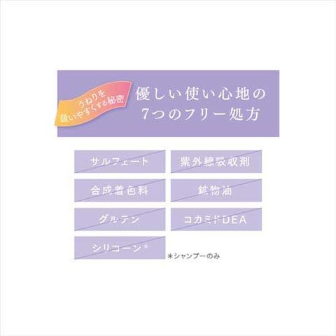 | 水、ステアリルアルコール、グリセリン、ジメチコン、ベヘントリモニウムクロリド、エタノール、ステアルジモニウムヒドロキシプロピル加水分解ケラチン(羊毛)、グリシン、セリン、グルタミン酸、アスパラギン酸、ロイシン、アラニン、リシン、アルギニン、チロシン、フェニルアラニン、トレオニン、プロリン、バリン、イソロイシン、ヒスチジン、セラミドNG、セラミドNP、セラミドAP、セラミドAG、セラミドEOP、加水分解ハトムギ種子、ゼイン、フィタントリオール、(加水分解シルク/PGプロピルメチルシランジオール)クロスポリマー、γ‐ドコサラクトン、バオバブ種子油、ヒマワリ種子油、ツバキ種子油、アセチルヒアルロン酸Na、加水分解水添デンプン、クオタニウム‐33、トコフェロール、ポリクオタニウム‐10、BG、PG、乳酸、トリ(カプリル酸/カプリン酸)グリセリル、アモジメチコン、ビスセテアリルアモジメチコン、ポリソルベート60、リン酸2Na、リン酸Na、イソプロパノール、コレステロール、エチドロン酸、ヒドロキシエチルセルロース、ステアルトリモニウムクロリド、ジステアリルジモニウムクロリド、オレス‐2、フェノキシエタノール、メチルパラベン、香料 |