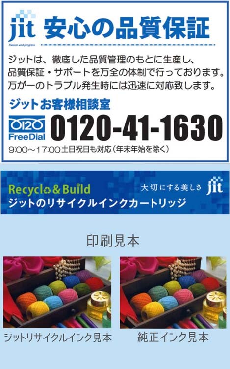 ●ジットのインクカートリッジは、良品率99.9991%以上の目標精度で創られています。高精度です。