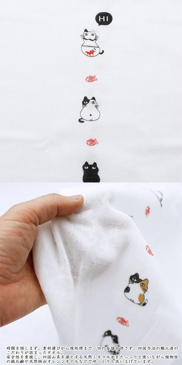 【今治産 フェイスタオル はごろも ガーゼ にゃんこ ブルーの商品詳細】