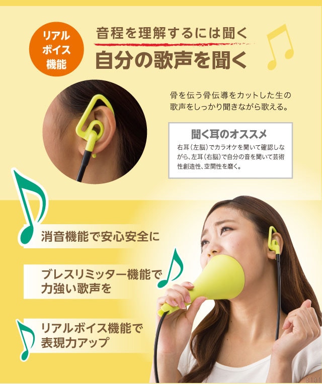 ●ウタエットは、消音機能を備えれており、自宅でも本気で歌えます。また、自分の声を聞きながら、より効果的なボイストレーニングできる構造になっています。