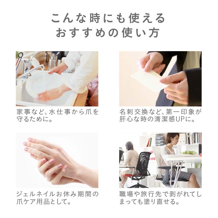 ●速乾なので忙しい人も、いつでもどこでもネイルケアできます。