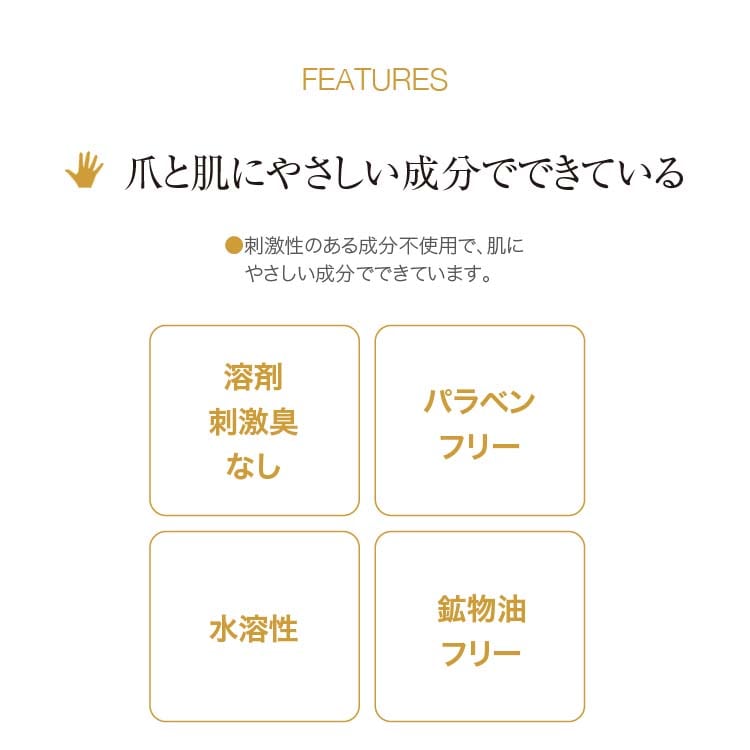 ●爪の成分に近しい美容成分を配合し、ダメージ爪を潤い補修(コーティング効果)。