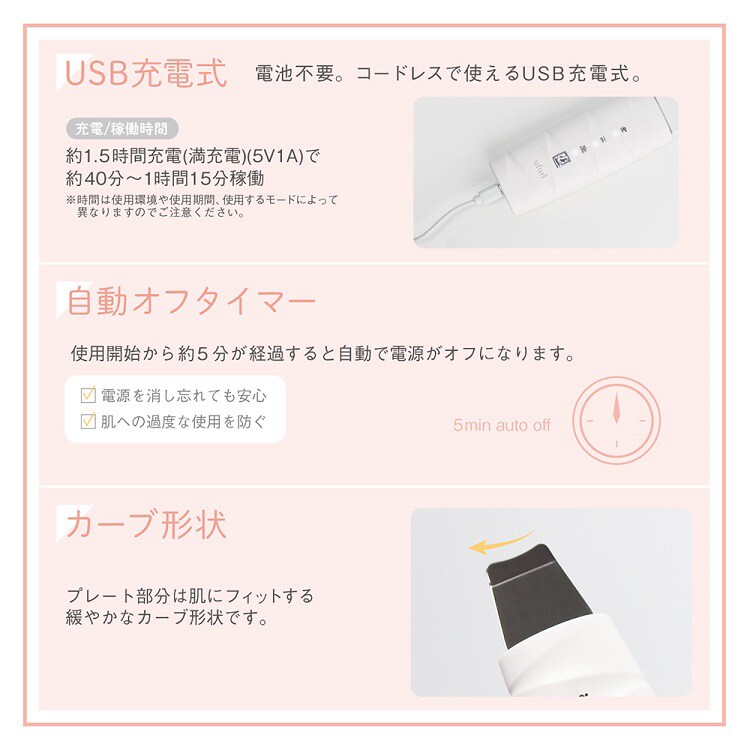 ●ピーリング:約25000Hzの超音波振動で汚れとすっきりクレンジング