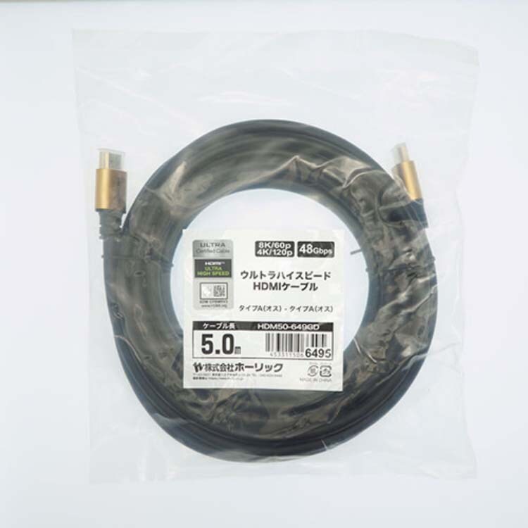 ホーリック ウルトラハイスピードHDMIケーブル 5m ゴールド HDM50-649GD (1個)