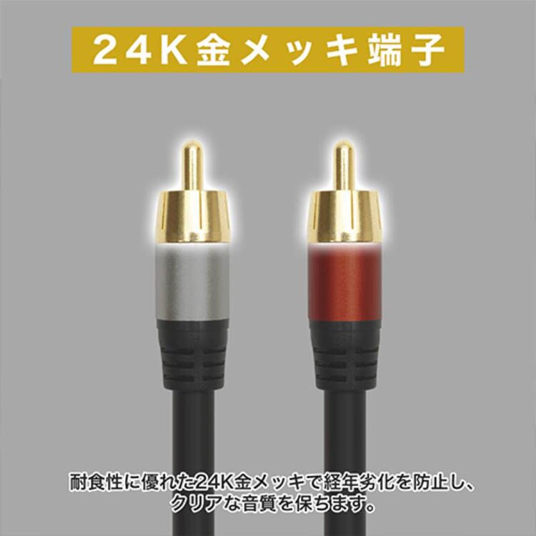 | コネクタ形状:RCAピンプラグ×2(オス)-RCAピンプラグ×2(オス) コネクタサイズ:W約11.0×H約11.0×D約36.0mm 導体:26AWG ケーブル直径:約6mm ケーブル長:1m OPCP袋パッケージ 保証期間:1年間 生産国:中国 |